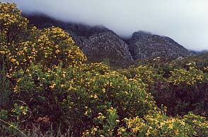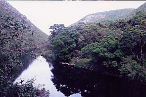 bien voulu nous dépanner avec une empreinte de carte bleue. Nous prenons ensuite la R407 vers Prince Albert afin de découvrir Swartberg Pass (p122). La pluie nous accompagne quasiment jusqu'au sommet et s'arrête au moment où nous passons devant notre premier Protea en fleur !. C'est un grand arbuste magnifique avec de très grandes fleurs : probablement les fleurs les plus remarquables du Fynbos. Le Fynbos, c'est la végétation arbustive de la région du Cap dont la diversité botanique, et en particulier l'endémisme, n'ont pas d'équivalent de part le monde sauf peut-être au niveau des plus riches forêts équatoriales. Les oiseaux par contre se font rares, le temps restant frais et très venteux. Nous stoppons toutefois aux abords du lit d'une petite rivière encaissée et relativement abritée du vent, qui coupe la piste (p123). C'est le premier site possible pour la Bouscarle de Victorin (Victorin's Scrub-Warbler), espèce peu commune et en général très discrète qui vit dans ce type de milieu très dense. Un mâle de Souï-Manga à poitrine orange (Orange-breasted Sunbird) se laisse admirer à loisir pendant qu'un chant doux et faible se fait entendre avec insistance. Il nous faut plusieurs minutes avant de découvrir enfin l'oiseau : il s'agit bien de la Bouscarle de Victorin (Victorin's Scrub-Warbler), en évidence et circulant entre des petits buissons et des gros rochers. C'est vraiment l'oiseau impossible à découvrir sans avoir un site précis où chercher Quoique le lendemain nous réservera aussi une très bonne surprise Nous arrivons en bas de la Pass avec peu d'observations en plus, le vent violent empêchant probablement l'activité habituelle des oiseaux. Entre Oudtshoorn et George, nous stoppons plusieurs fois afin d'observer les abords d'une rivière. L'une d'elle abrite une petite colonie d'Ibis Hagedash (Hadada Ibis) dont un couple nous fera une démonstration de tendresse et même un peu plus Nous sommes en fait dans une région d'élevage intensif d'Autruches (Ostrich) et le paysage est surtout occupé par des prairies avec des centaines d'oiseaux. Nous passons ensuite par un col juste avant la ville de George dans un brouillard qui réduit la visibilité à moins de 30 mètres ! Heureusement la vue se dégage lorsque nous approchons de l'0céan Indien. Nous nous installons dans le camping du parc national de Wilderness, sous une température agréable de l'ordre de 20°C et surtout sans vent. Une visite de la plage juste en face du camping permettra d'observer pour la seconde fois deux Baleines australes (Southern Right Whale). Une fois le déjeuner terminé, nous partons à la découverte de la forêt subtropicale. Deux pistes longent la rivière (p118 à 120), l'une faisant une boucle d'environ 5 km, la seconde remontant la rivière sur environ 4 km. Nous réservons ce second layon pour le lendemain matin. Nous ne sommes pas encore sortis du camping lors de nos premières observations très intéressantes : notre premier Gonolek boubou (Southern Boubou) suivi du premier Sénégali souï (Swee Waxbill). Nous traversons la rivière sur un petit pont où un couple de Martin-pêcheur pie (Pied Kingfisher) pêche. La forêt est calme en cette fin d'après midi même si les Souï-Manga du Cap (Southern Double-collared Sunbird) sont relativement nombreux. Un Batis du Cap (Cape Batis) attire notre attention avant de disparaître rapidement. Un mouvement dans le même arbre nous signale la présence d'un autre oiseau. Plusieurs secondes passent avant de pouvoir l'identifier : une Pie-grièche olive (Olive Bushshrike). Un peu plus loin, l'excitation monte lorsque nous observons notre premier Touraco lourie (Knysna Turaco) pas très loin, mais tout de même assez difficile à voir. J'aurai la chance de voir également un Loriot africain (African Black-headed Oriole) au même endroit pendant quelques secondes. Ensuite, nous sommes obligés d'accélérer le pas afin de terminer notre boucle avant la nuit. Nous quittons le lit de la rivière et montons vers le sommet de la crête. Les oiseaux deviennent rares et la végétation de plus en plus touffue. Un superbe point de vue domine l'embouchure de la rivière ainsi que le camping, mais il fait déjà trop sombre pour faire une photo. Nous redescendons vers le camping quasiment sans y voir goutte et nous terminons la journée au restaurant devant un bon plat de poissons. |